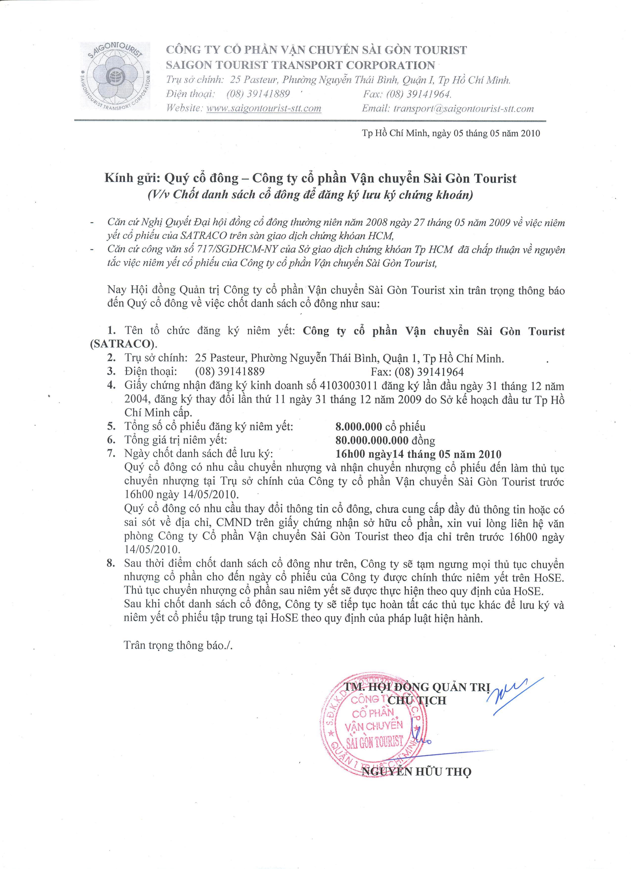 THÔNG BÃO CHá»T DANH SÃCH Cá»” ÄÔNG ÄỂ ÄÄ‚NG Kà LƯU Kà CHỨNG KHOÃN
