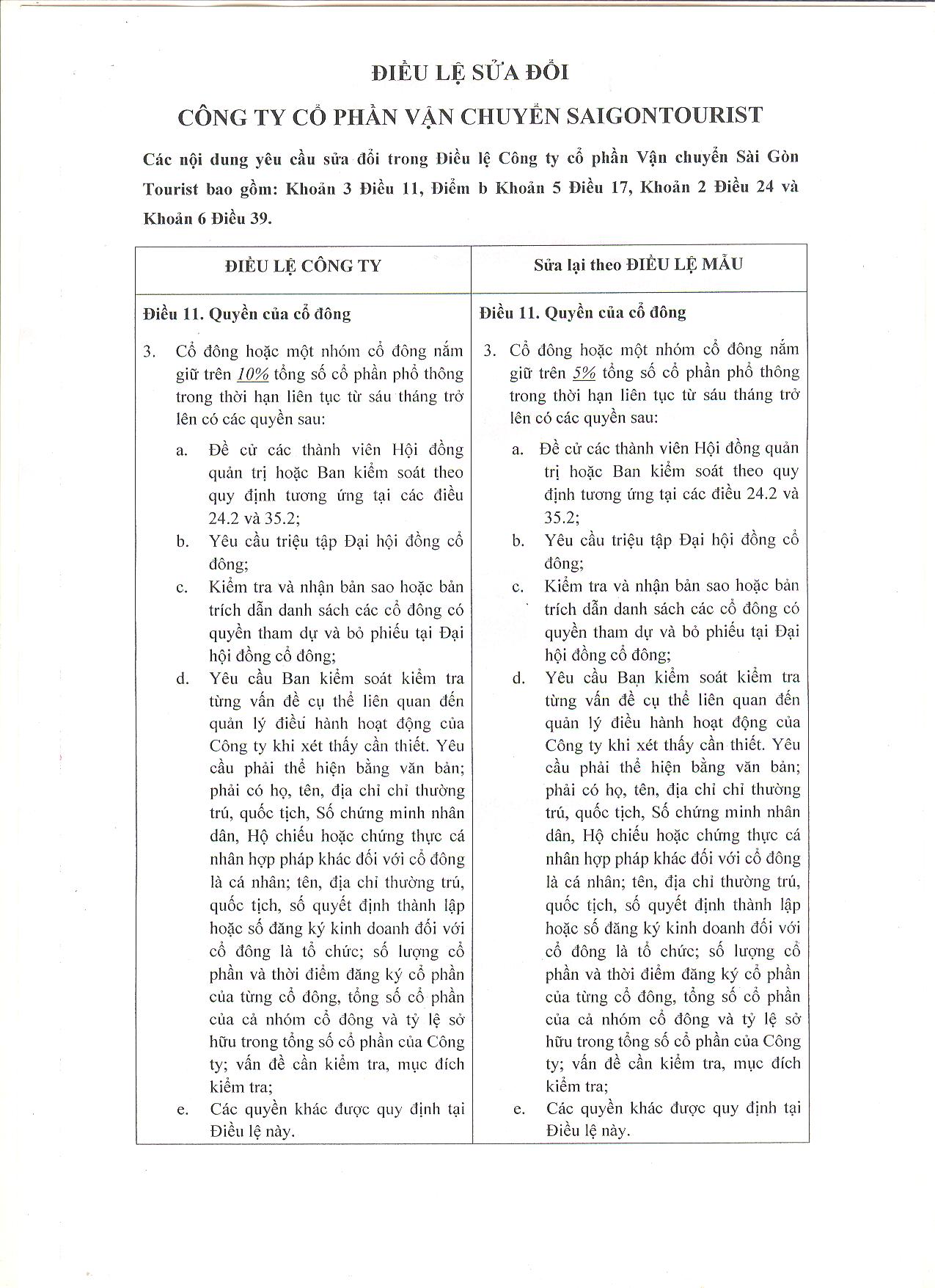 ÄIỀU LỆ SỬA Äá»”I CÔNG TY Cá»” PHẦN VẬN CHUYỂN SAIGONTOURIST