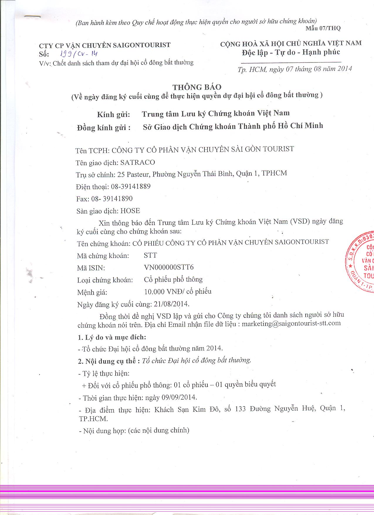 THÔNG BÃO CHá»T DANH SÃCH Cá»” ÄÔNG NÄ‚M 2014
