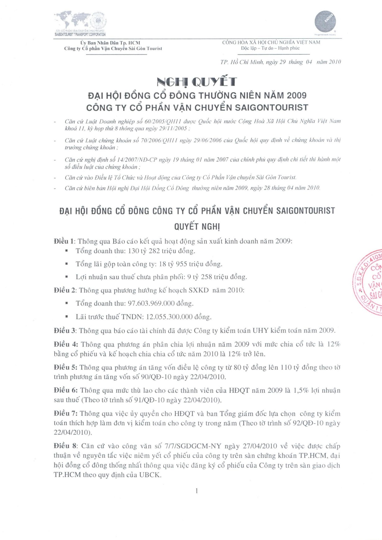 NGHỊ QUYẾT ÄẠI HỘI Cá»” ÄÔNG THƯỜNG NIÊN 2009